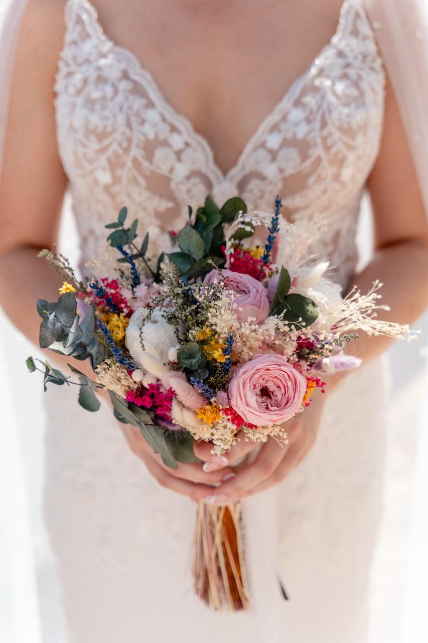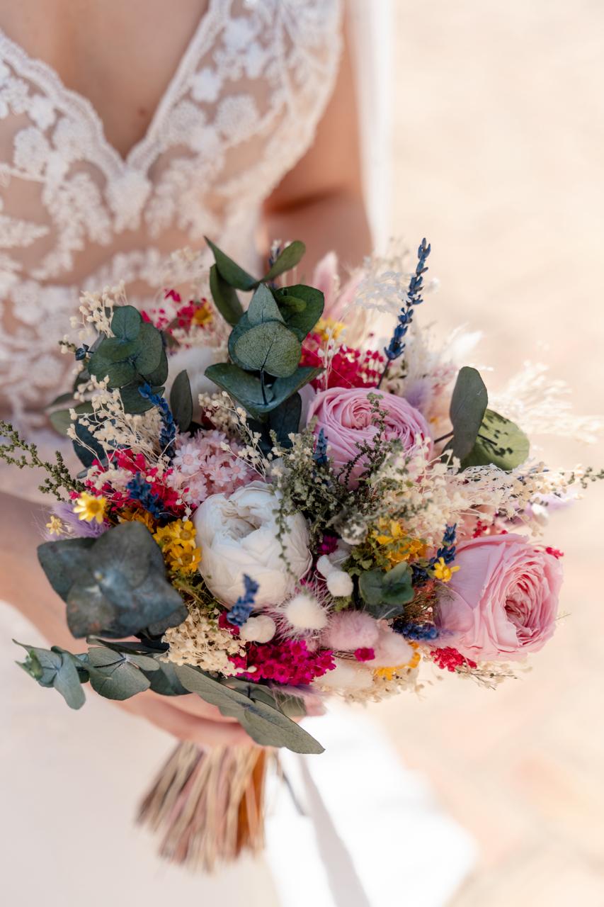 Ramo de flores preservadas tamaño M estilo silvestre(25-30 cm aprox.). Todos nuestros ramos son 100% personalizados e incluyen como máximo 4 flores principales. (Rosa, Gardenia, Hortensia, Girasol…)