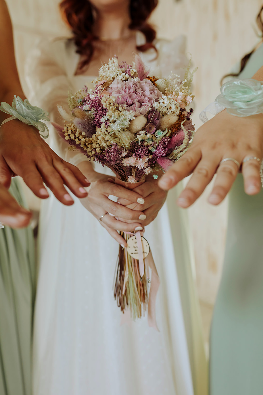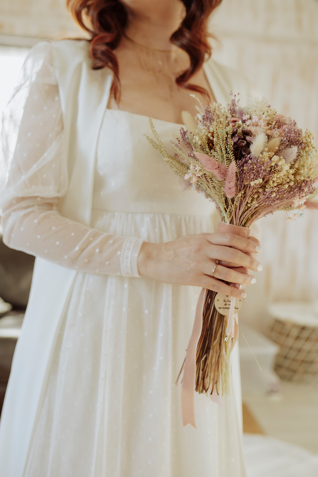 Ramo tamaño M silvestre 100% personalizado, compuesto por Hortensia preservada, Paniculata preservada y variado de flores silvestres.