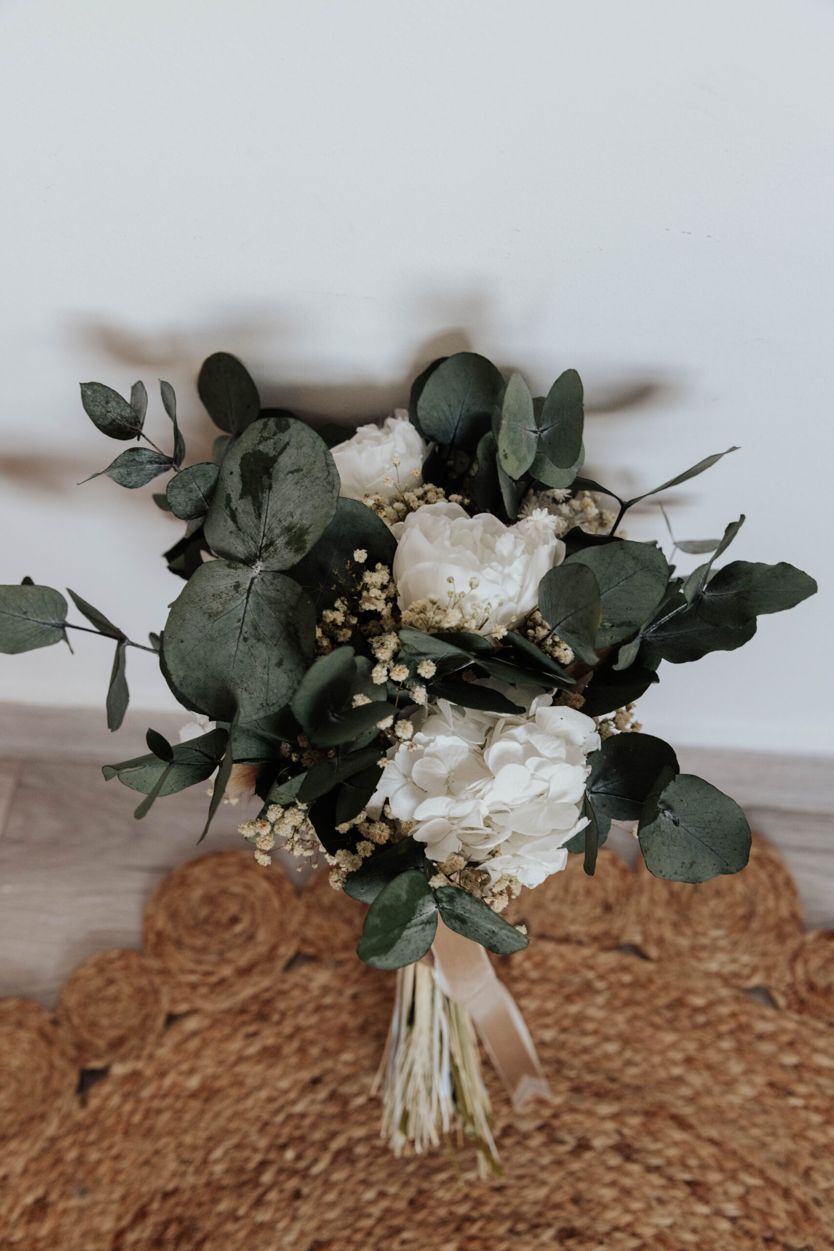 Ramo tamaño M silvestre 100% personalizado, compuesto por Peonía preservada, Eucalipto preservado.