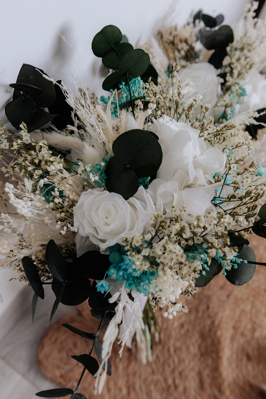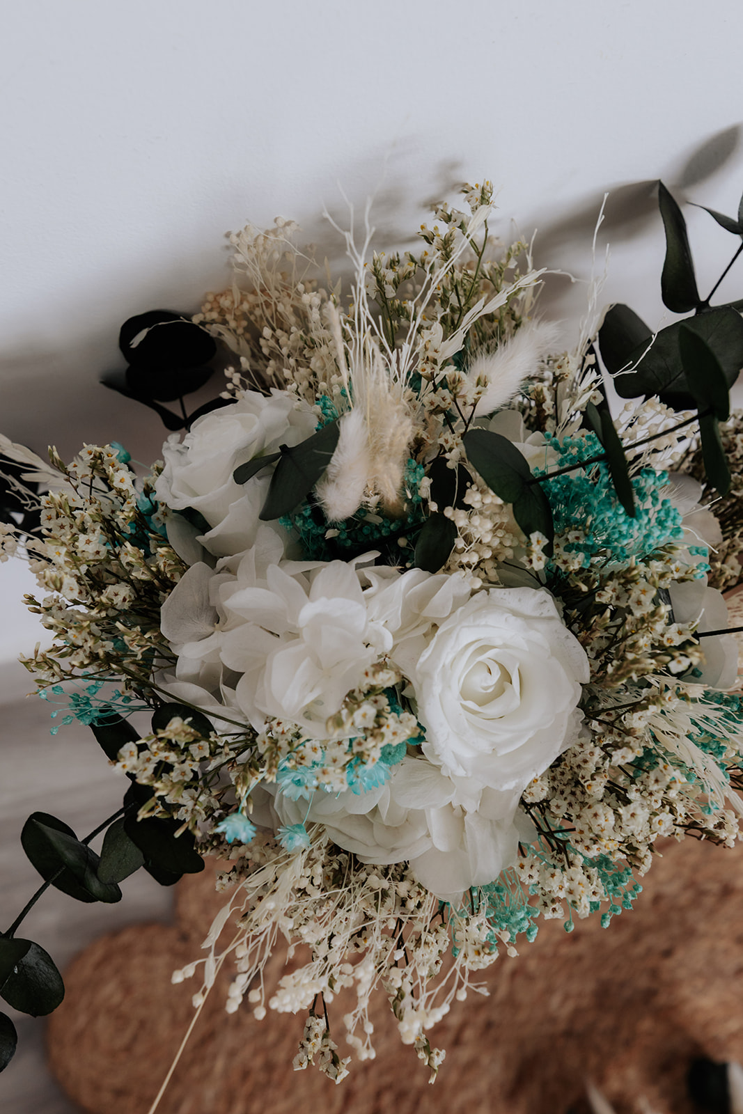 Ramo de flores preservadas tamaño M estilo silvestre(25-30 cm aprox.). Todos nuestros ramos son 100% personalizados e incluyen como máximo 4  flores principales. (Rosa, Gardenia, Hortensia, Girasol…)