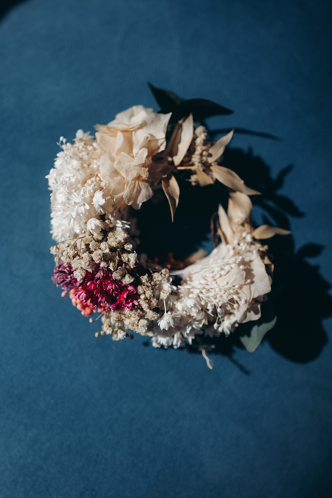 Tocado novia. Todos nuestros tocados y complementos son 100% personalizados, a juego de tu ramo. Importante: la elaboración de todos los ramos y complementos de novia se realizaran bajo agenda cerrada, por tanto la compra debe realizarse mínimo con 2 meses de anterioridad para reservar tu fecha boda y asegurar tu pedido. En cuanto realices tu compra, nos pondremos en contacto contigo para agendar una videollamada y conocer el resto de detalles, definir el estilo y realizar la selección final de flores. Si tienes alguna duda, o tu fecha de boda en más próxima de 2 meses ponte en contacto con nosotros antes de realizar la compra.